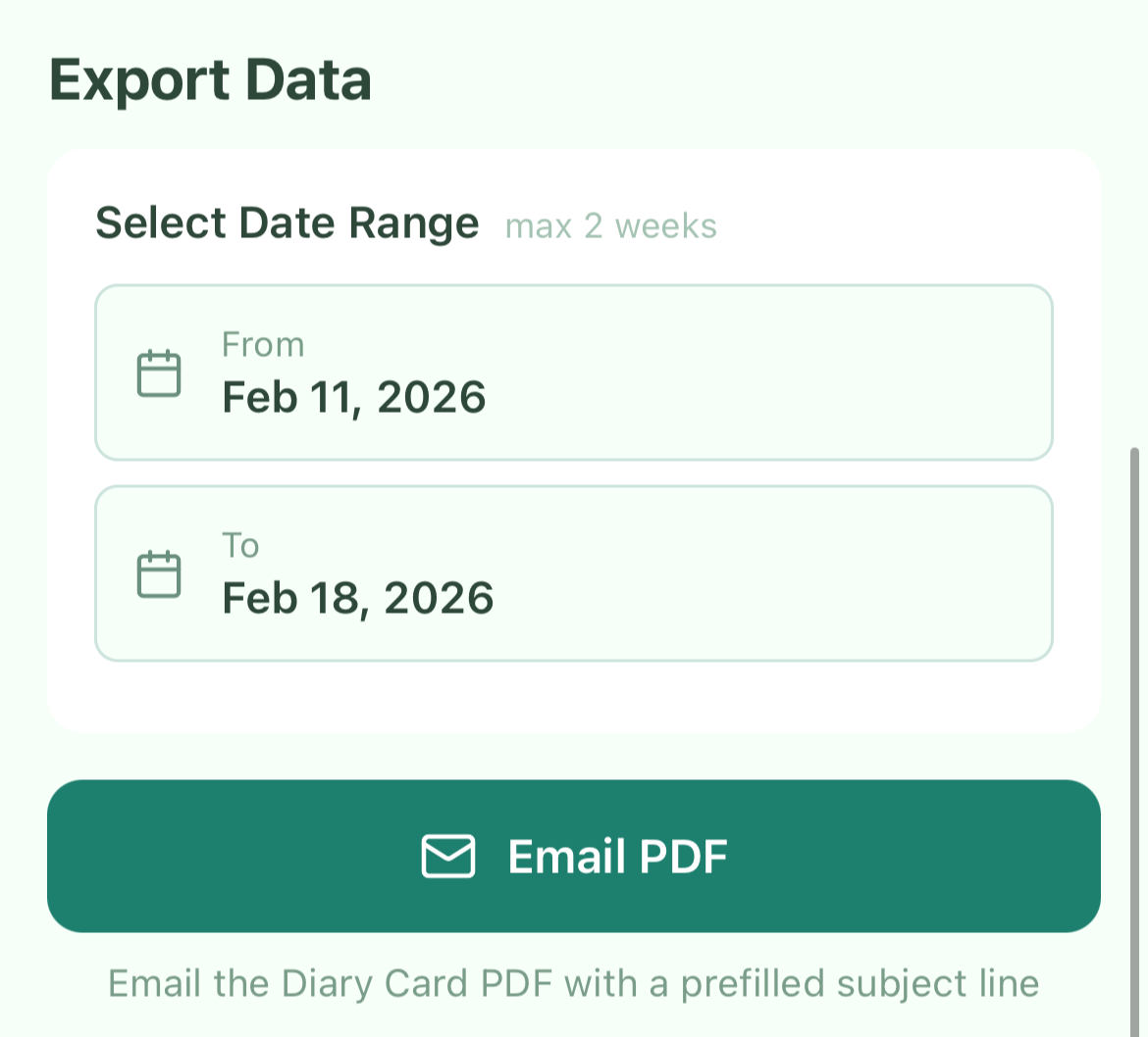 You may export your data any time using the email PDF feature in Settings. Exported data is handled entirely by you and is not transmitted to us.